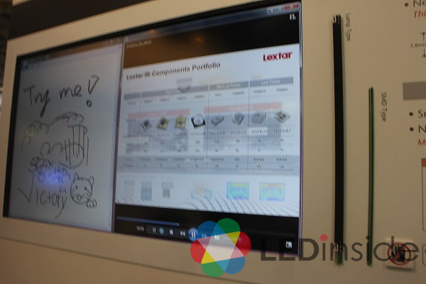 隆达也展示IR红外光之多款应用产品,包括大型多点触控面板以及安防监视摄影机,其中利用不可见光的特性,IRLED可应用于军事用途或幼儿监控系统等场所。